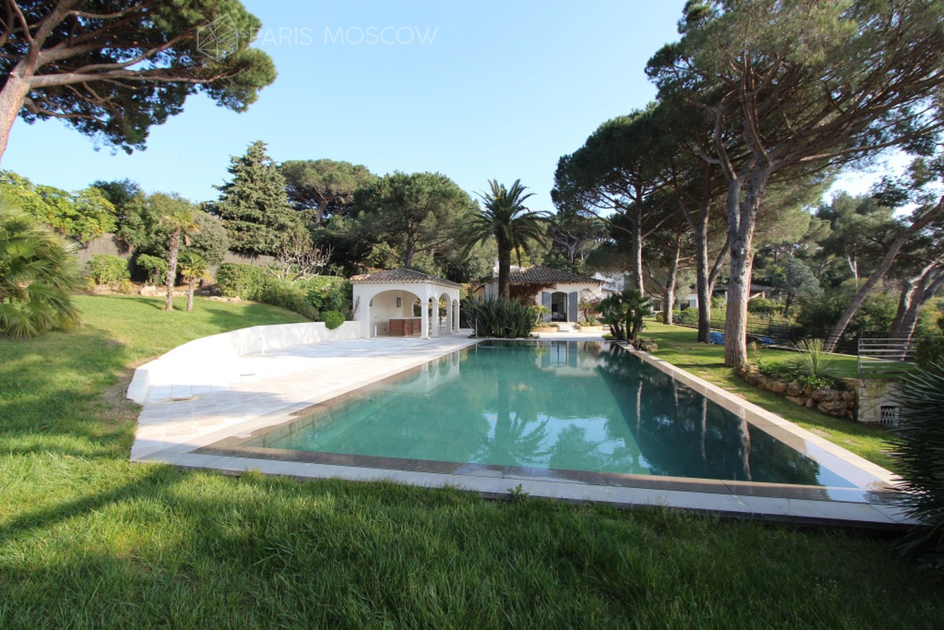 Новая вилла, расположена в престижном и охраняемом посёлке "Парки Сен-Тропе". Красивый вид на море и большой плоский участок. Безупречный современный комфорт. Изумительно!!!