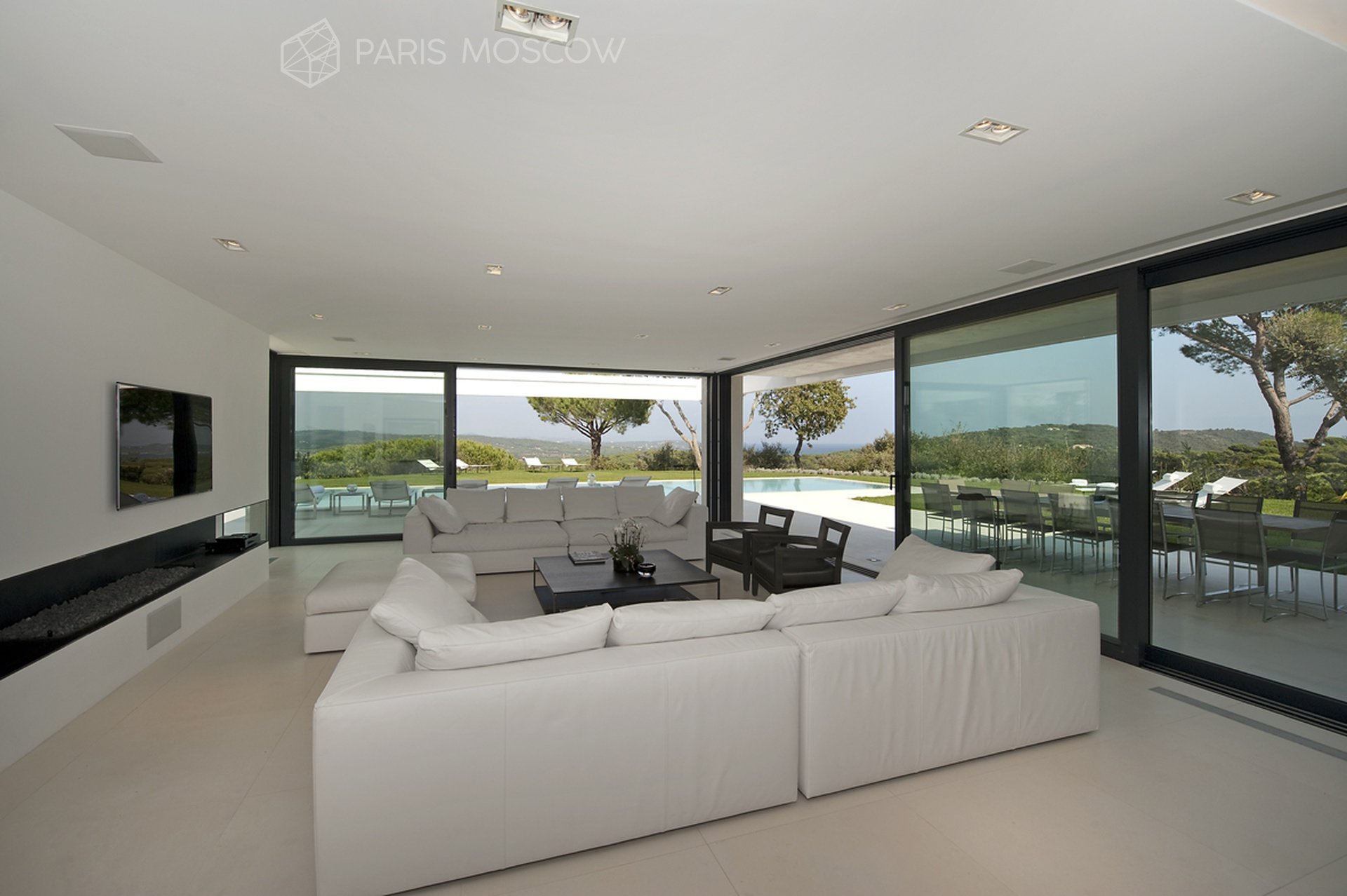 • Большой зал с камином и выходом на террасу и к бассейну